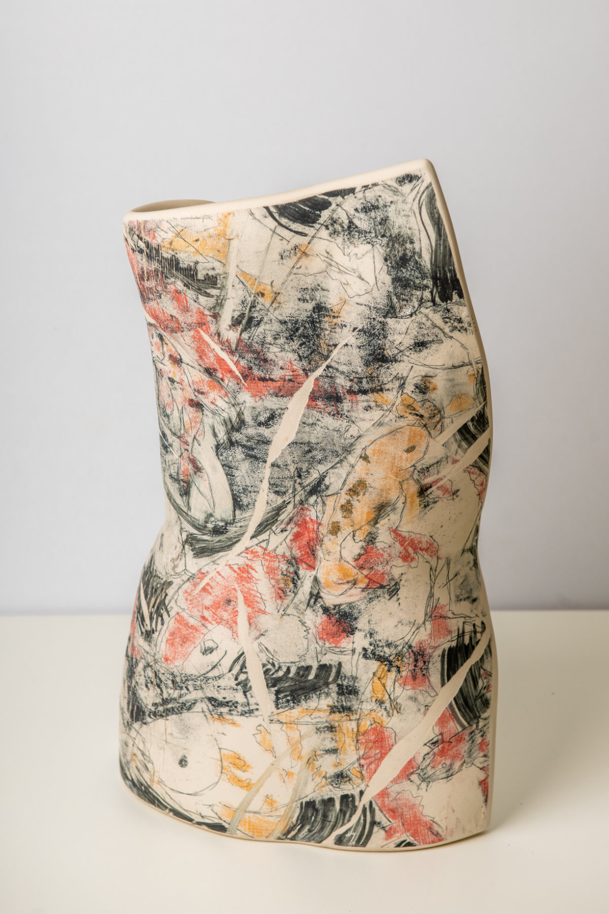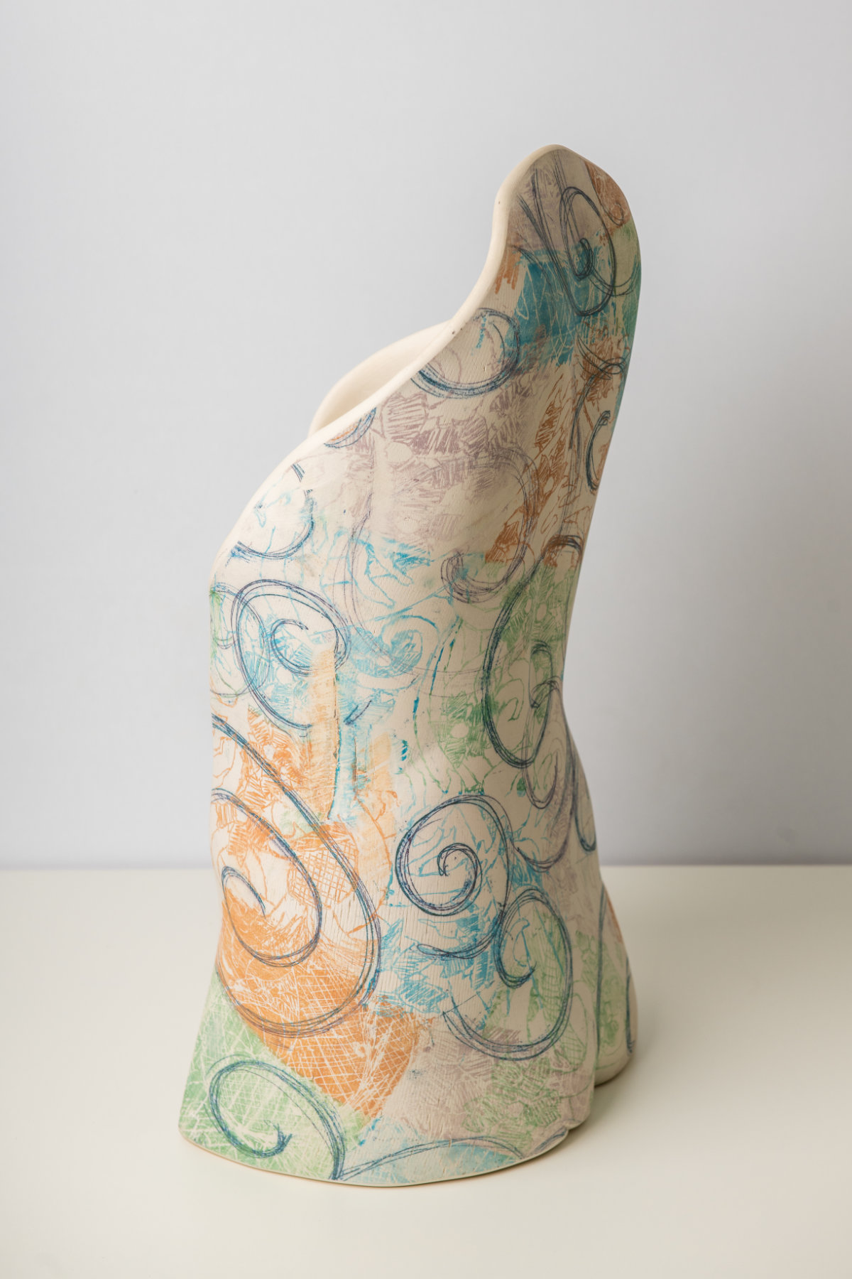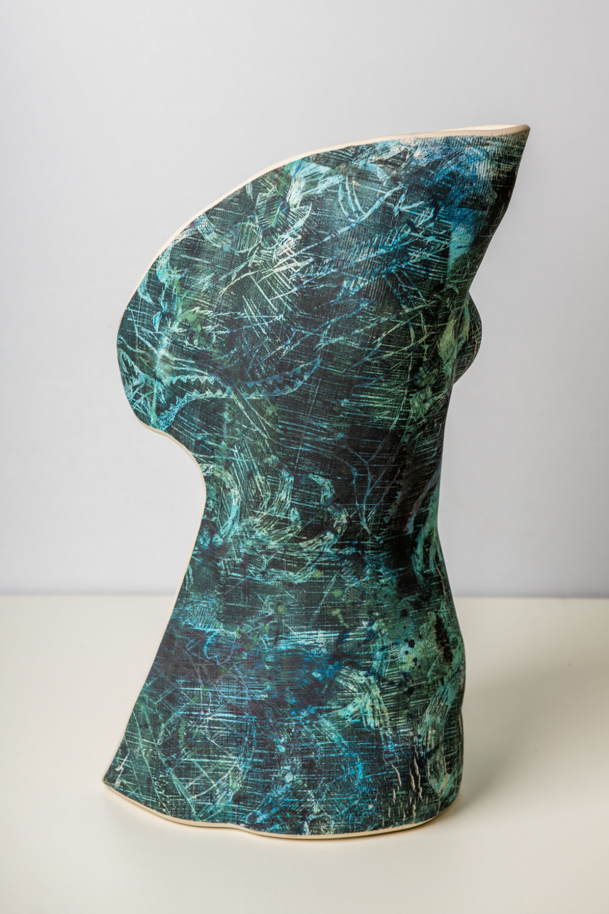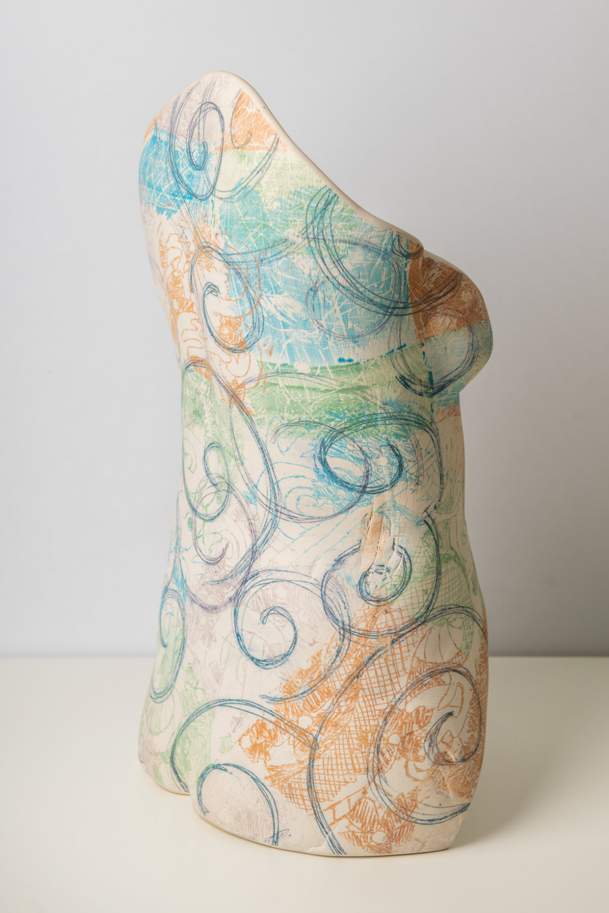 Le contraste entre l’intérieur blanc de la pièce, fait de porcelaine pure, et l’extérieur coloré, orné de motifs inspirés du tatouage traditionnel, symbolise la dualité entre la fragilité et la force, entre la surface et l’intimité. Ce jeu de textures et de couleurs souligne l’ambivalence de la condition féminine, entre la fragilité du corps et la puissance d’une identité façonnée par le tatouage.